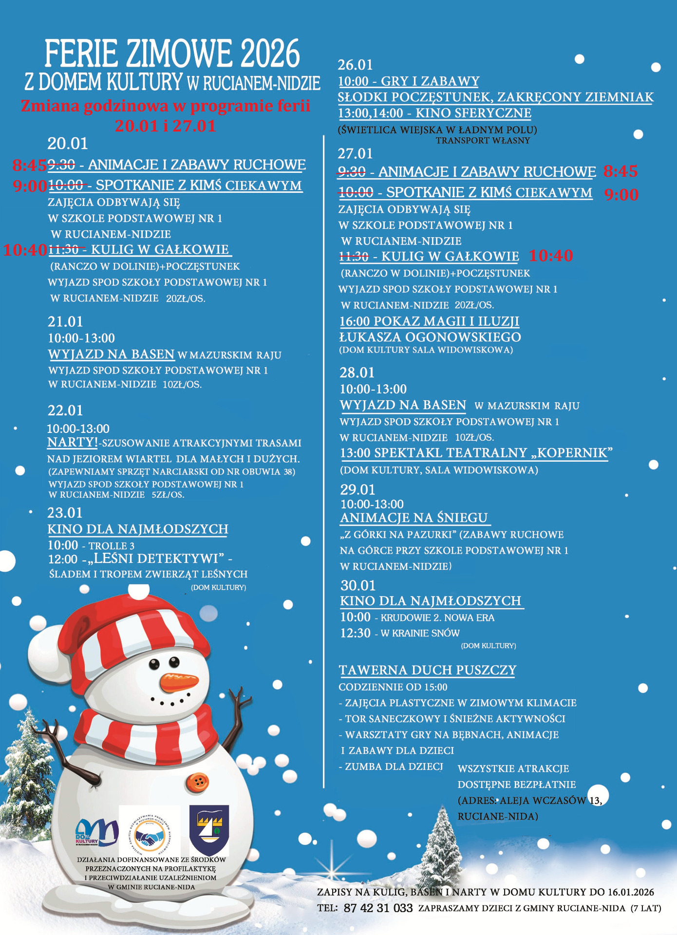 Ferie zimowe 2026 Uwaga zmiana godzinowa w programie ferii